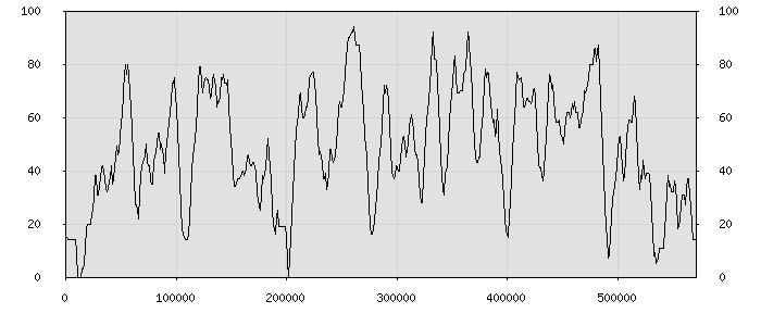 (по горизонтали: счётчик знаков; по вертикали: процент диалогов; размер скользящего окна: знаков, шаг: 1000 знаков) |