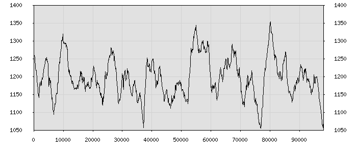 (по горизонтали: счётчик знаков; по вертикали: процент диалогов; размер скользящего окна: знаков, шаг: 1000 знаков) |