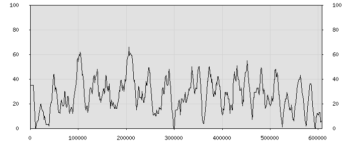 (по горизонтали: счётчик знаков; по вертикали: процент диалогов; размер скользящего окна: знаков, шаг: 1000 знаков) |