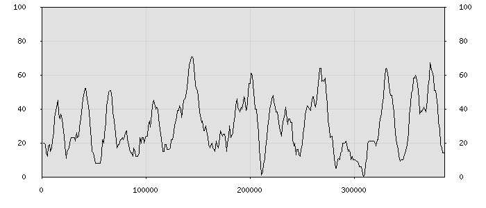 (по горизонтали: счётчик знаков; по вертикали: процент диалогов; размер скользящего окна: знаков, шаг: 1000 знаков) |