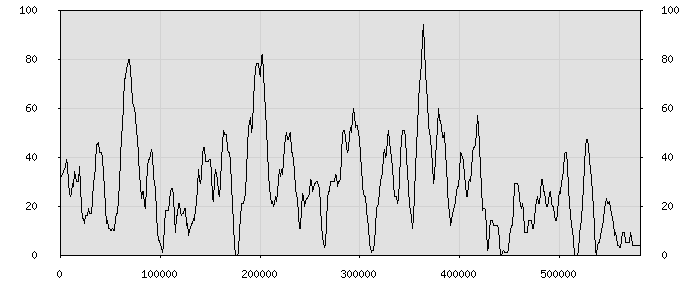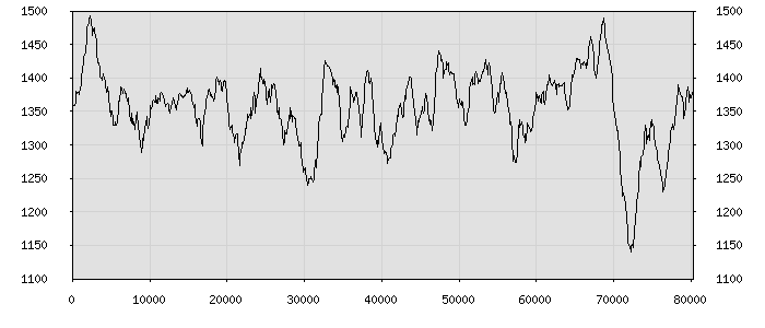 (по горизонтали: счётчик знаков; по вертикали: процент диалогов; размер скользящего окна: знаков, шаг: 1000 знаков) |