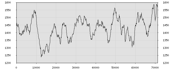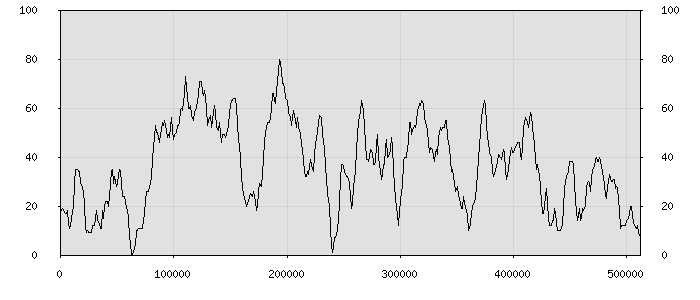 (по горизонтали: счётчик знаков; по вертикали: процент диалогов; размер скользящего окна: знаков, шаг: 1000 знаков) |