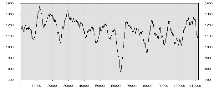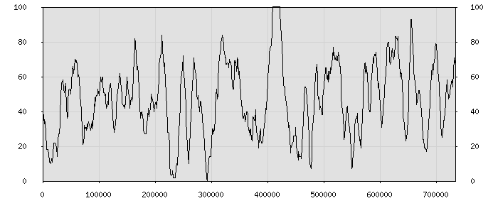 (по горизонтали: счётчик знаков; по вертикали: процент диалогов; размер скользящего окна: знаков, шаг: 1000 знаков) |