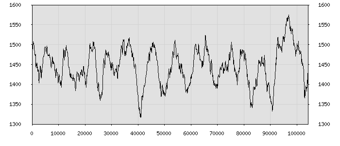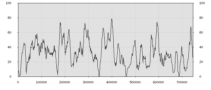 (по горизонтали: счётчик знаков; по вертикали: процент диалогов; размер скользящего окна: знаков, шаг: 1000 знаков) |