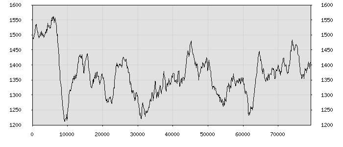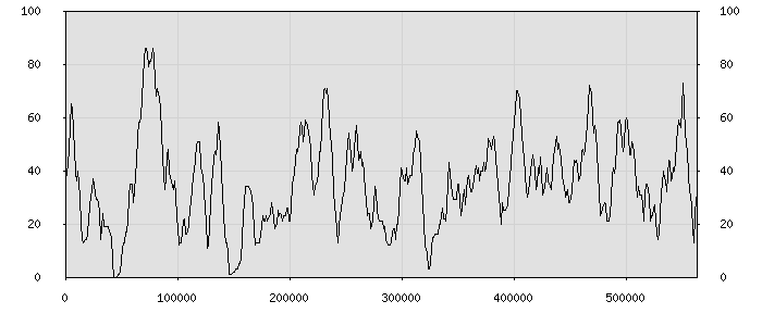 (по горизонтали: счётчик знаков; по вертикали: процент диалогов; размер скользящего окна: знаков, шаг: 1000 знаков) |