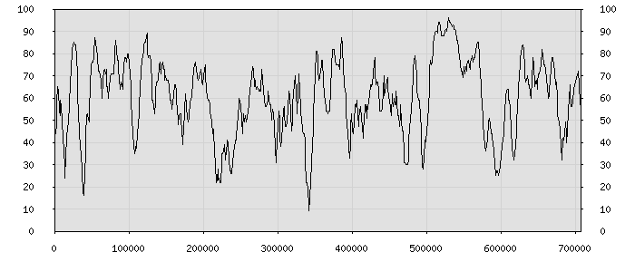 (по горизонтали: счётчик знаков; по вертикали: процент диалогов; размер скользящего окна: знаков, шаг: 1000 знаков) |