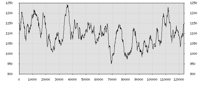 (по горизонтали: счётчик знаков; по вертикали: процент диалогов; размер скользящего окна: знаков, шаг: 1000 знаков) |