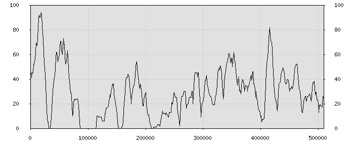 (по горизонтали: счётчик знаков; по вертикали: процент диалогов; размер скользящего окна: знаков, шаг: 1000 знаков) |
