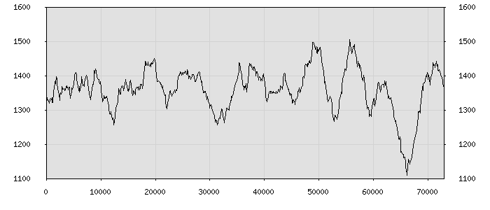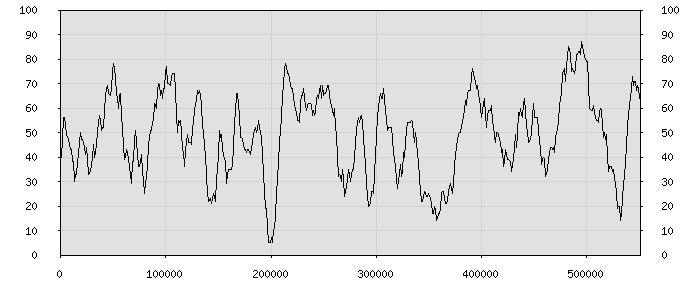 (по горизонтали: счётчик знаков; по вертикали: процент диалогов; размер скользящего окна: знаков, шаг: 1000 знаков) |
