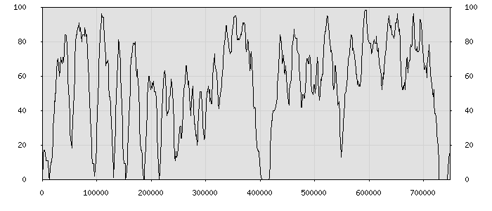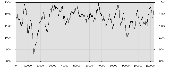 (по горизонтали: счётчик знаков; по вертикали: процент диалогов; размер скользящего окна: знаков, шаг: 1000 знаков) |