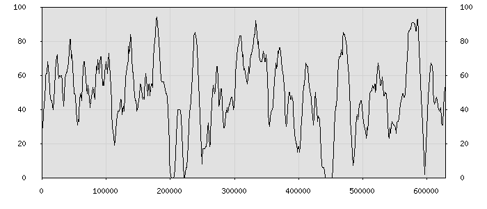 (по горизонтали: счётчик знаков; по вертикали: процент диалогов; размер скользящего окна: знаков, шаг: 1000 знаков) |