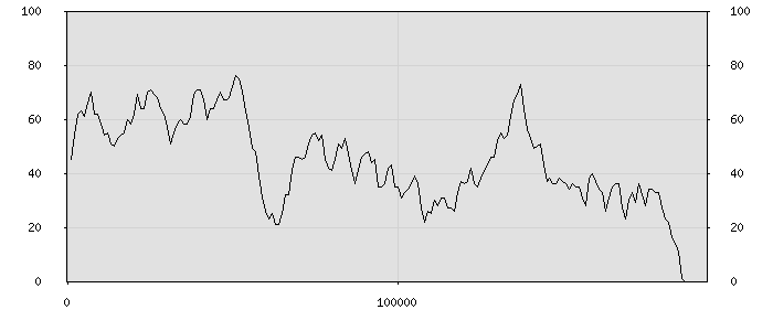 (по горизонтали: счётчик знаков; по вертикали: процент диалогов; размер скользящего окна: знаков, шаг: 1000 знаков) |