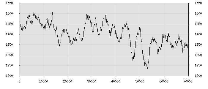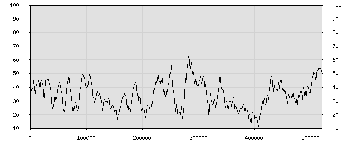 (по горизонтали: счётчик знаков; по вертикали: процент диалогов; размер скользящего окна: знаков, шаг: 1000 знаков) |