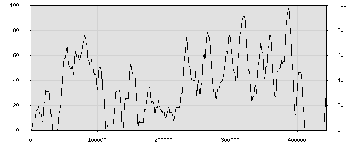 (по горизонтали: счётчик знаков; по вертикали: процент диалогов; размер скользящего окна: знаков, шаг: 1000 знаков) |