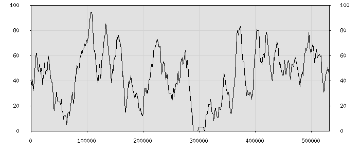 (по горизонтали: счётчик знаков; по вертикали: процент диалогов; размер скользящего окна: знаков, шаг: 1000 знаков) |