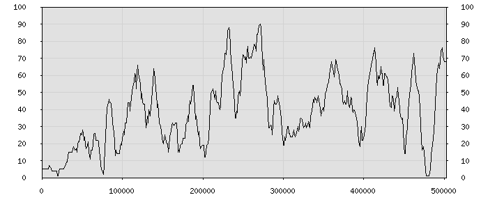 (по горизонтали: счётчик знаков; по вертикали: процент диалогов; размер скользящего окна: знаков, шаг: 1000 знаков) |