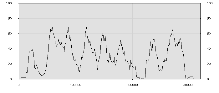 (по горизонтали: счётчик знаков; по вертикали: процент диалогов; размер скользящего окна: знаков, шаг: 1000 знаков) |