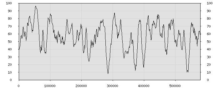 (по горизонтали: счётчик знаков; по вертикали: процент диалогов; размер скользящего окна: знаков, шаг: 1000 знаков) |
