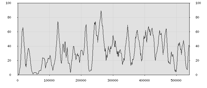 (по горизонтали: счётчик знаков; по вертикали: процент диалогов; размер скользящего окна: знаков, шаг: 1000 знаков) |