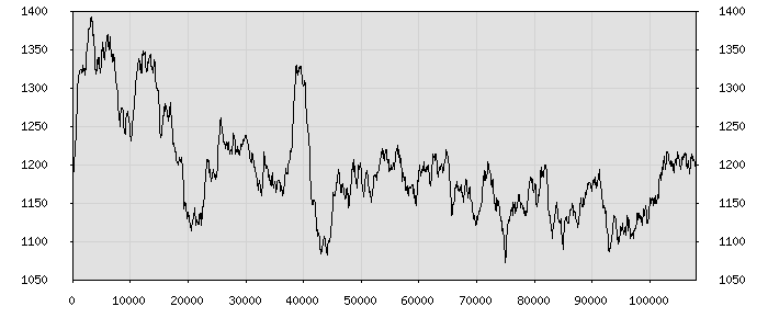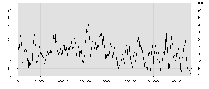 (по горизонтали: счётчик знаков; по вертикали: процент диалогов; размер скользящего окна: знаков, шаг: 1000 знаков) |