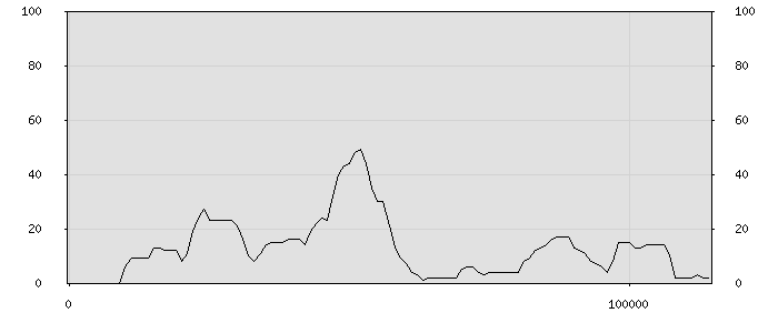 (по горизонтали: счётчик знаков; по вертикали: процент диалогов; размер скользящего окна: знаков, шаг: 1000 знаков) |