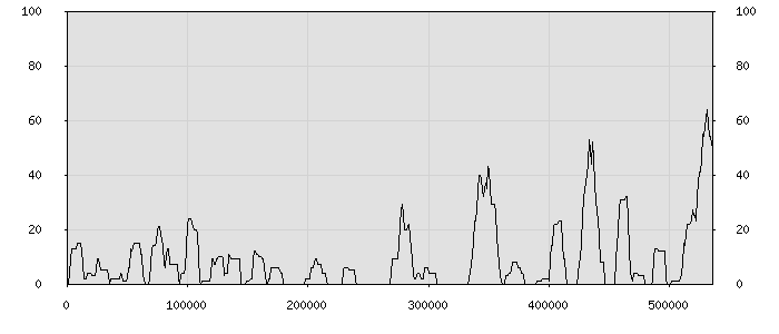 (по горизонтали: счётчик знаков; по вертикали: процент диалогов; размер скользящего окна: знаков, шаг: 1000 знаков) |