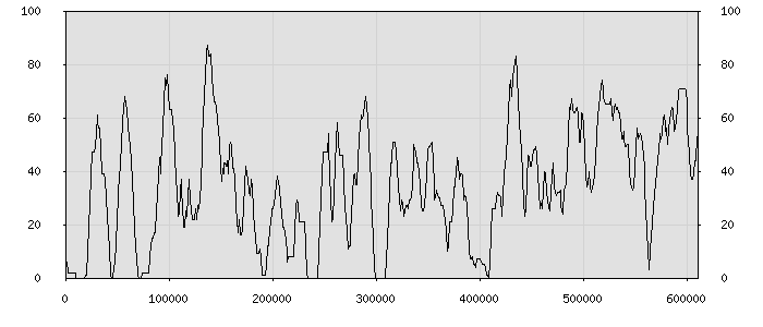 (по горизонтали: счётчик знаков; по вертикали: процент диалогов; размер скользящего окна: знаков, шаг: 1000 знаков) |