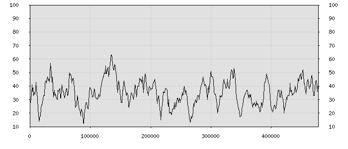 (по горизонтали: счётчик знаков; по вертикали: процент диалогов; размер скользящего окна: знаков, шаг: 1000 знаков) |