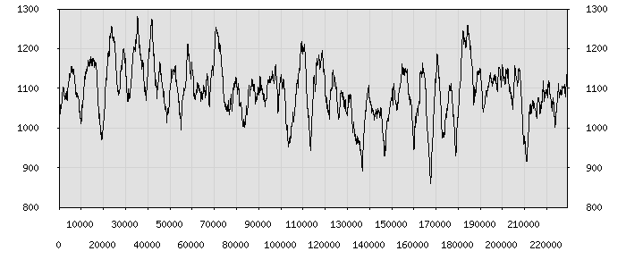 (по горизонтали: счётчик знаков; по вертикали: процент диалогов; размер скользящего окна: знаков, шаг: 1000 знаков) |