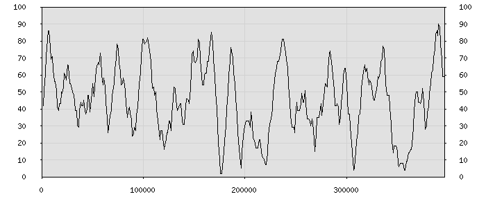 (по горизонтали: счётчик знаков; по вертикали: процент диалогов; размер скользящего окна: знаков, шаг: 1000 знаков) |