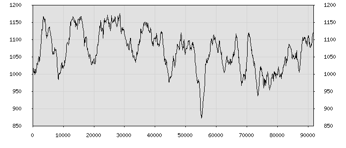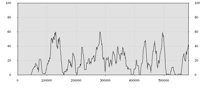 (по горизонтали: счётчик знаков; по вертикали: процент диалогов; размер скользящего окна: знаков, шаг: 1000 знаков) |