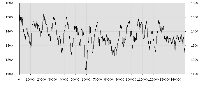 (по горизонтали: счётчик знаков; по вертикали: процент диалогов; размер скользящего окна: знаков, шаг: 1000 знаков) |