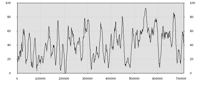 (по горизонтали: счётчик знаков; по вертикали: процент диалогов; размер скользящего окна: знаков, шаг: 1000 знаков) |