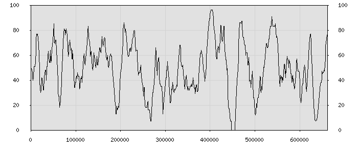 (по горизонтали: счётчик знаков; по вертикали: процент диалогов; размер скользящего окна: знаков, шаг: 1000 знаков) |
