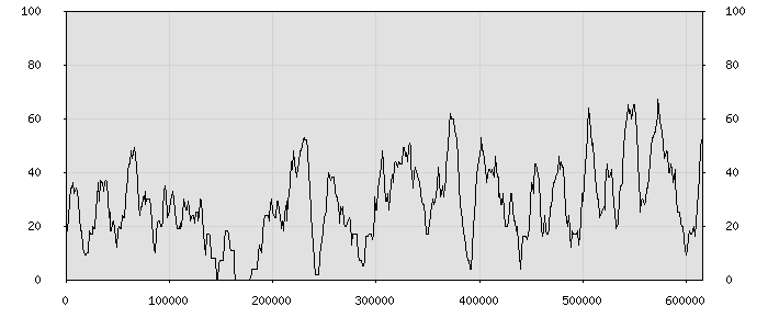 (по горизонтали: счётчик знаков; по вертикали: процент диалогов; размер скользящего окна: знаков, шаг: 1000 знаков) |