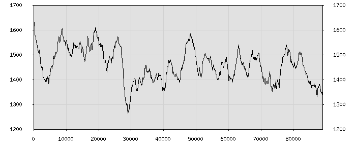 (по горизонтали: счётчик знаков; по вертикали: процент диалогов; размер скользящего окна: знаков, шаг: 1000 знаков) |