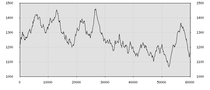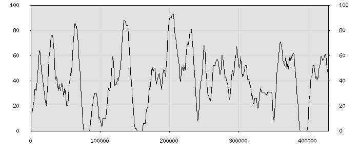 (по горизонтали: счётчик знаков; по вертикали: процент диалогов; размер скользящего окна: знаков, шаг: 1000 знаков) |