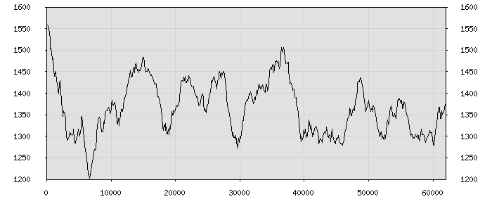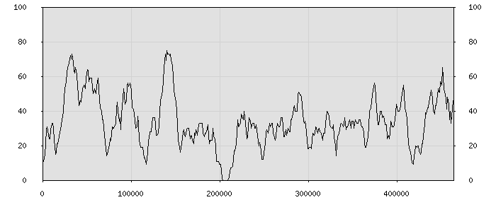 (по горизонтали: счётчик знаков; по вертикали: процент диалогов; размер скользящего окна: знаков, шаг: 1000 знаков) |