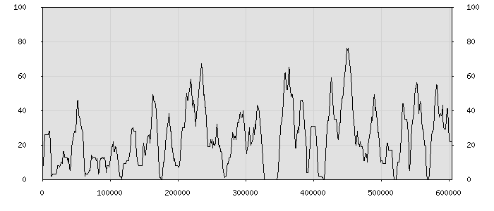 (по горизонтали: счётчик знаков; по вертикали: процент диалогов; размер скользящего окна: знаков, шаг: 1000 знаков) |