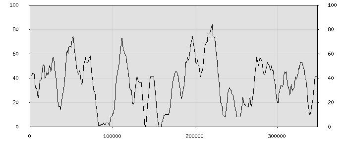 (по горизонтали: счётчик знаков; по вертикали: процент диалогов; размер скользящего окна: знаков, шаг: 1000 знаков) |