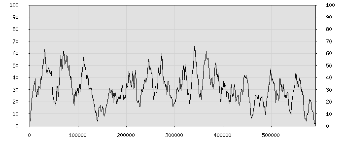 (по горизонтали: счётчик знаков; по вертикали: процент диалогов; размер скользящего окна: знаков, шаг: 1000 знаков) |