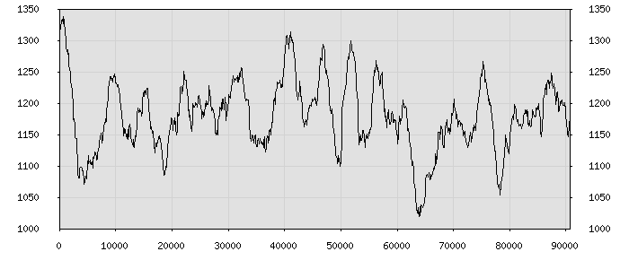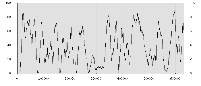 (по горизонтали: счётчик знаков; по вертикали: процент диалогов; размер скользящего окна: знаков, шаг: 1000 знаков) |
