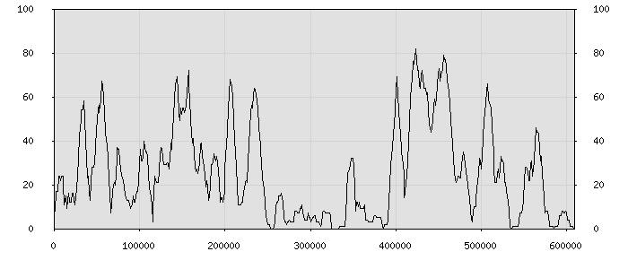 (по горизонтали: счётчик знаков; по вертикали: процент диалогов; размер скользящего окна: знаков, шаг: 1000 знаков) |
