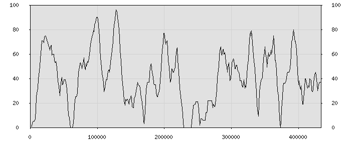 (по горизонтали: счётчик знаков; по вертикали: процент диалогов; размер скользящего окна: знаков, шаг: 1000 знаков) |