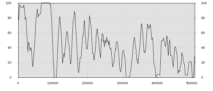 (по горизонтали: счётчик знаков; по вертикали: процент диалогов; размер скользящего окна: знаков, шаг: 1000 знаков) |