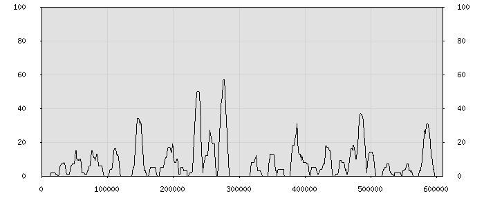 (по горизонтали: счётчик знаков; по вертикали: процент диалогов; размер скользящего окна: знаков, шаг: 1000 знаков) |