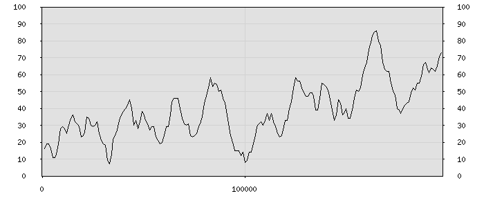 (по горизонтали: счётчик знаков; по вертикали: процент диалогов; размер скользящего окна: знаков, шаг: 1000 знаков) |
