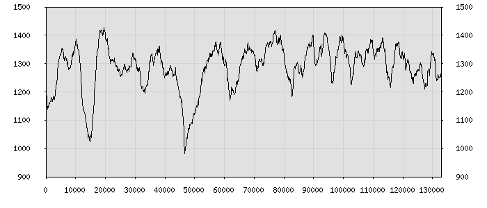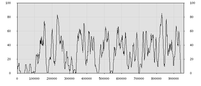(по горизонтали: счётчик знаков; по вертикали: процент диалогов; размер скользящего окна: знаков, шаг: 1000 знаков) |