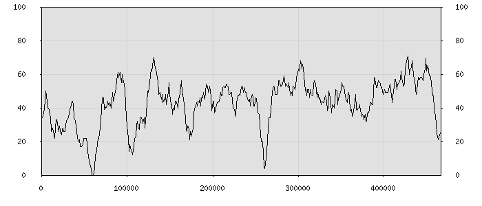 (по горизонтали: счётчик знаков; по вертикали: процент диалогов; размер скользящего окна: знаков, шаг: 1000 знаков) |