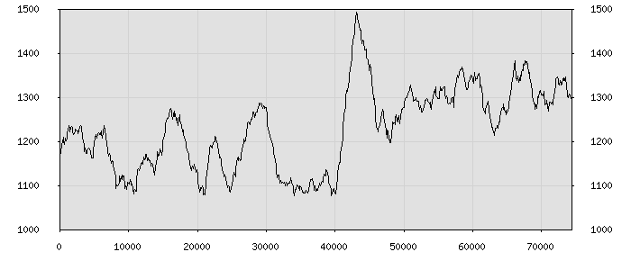 (по горизонтали: счётчик знаков; по вертикали: процент диалогов; размер скользящего окна: знаков, шаг: 1000 знаков) |